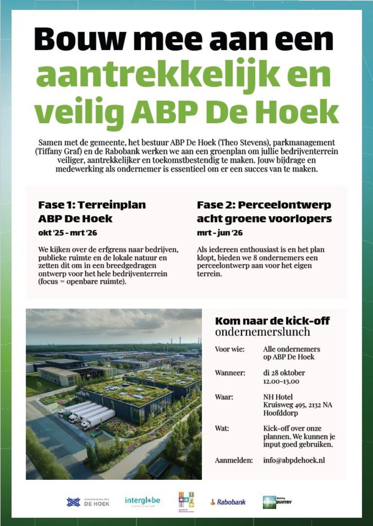 Uitnodiging ondernemerslunch di 28 okt - Aantrekkelijker en veiliger ABP De Hoek